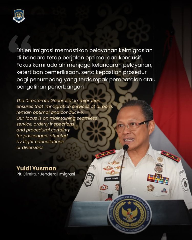Plt. Direktur Jenderal Imigrasi, Yuldi Yusman, menegaskan bahwa pihaknya telah menginstruksikan seluruh jajaran di bandara internasional untuk meningkatkan kesiapan pelayanan dan memastikan proses pemeriksaan keimigrasian tetap berjalan optimal.
