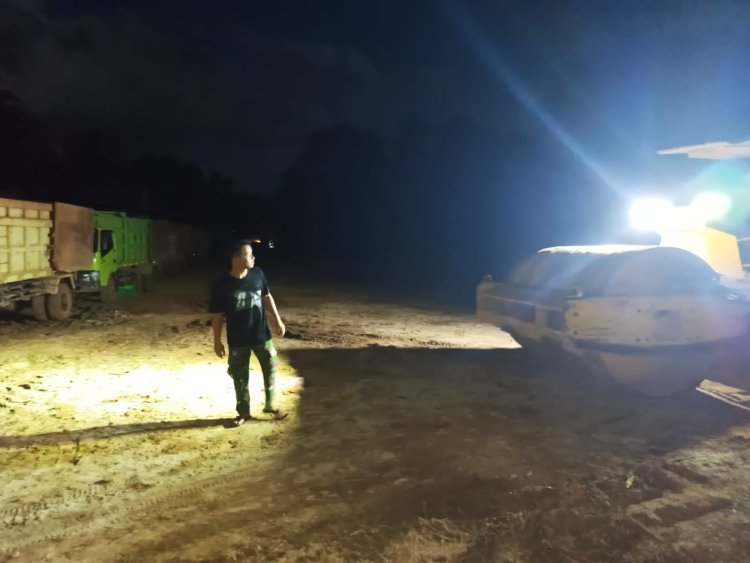 Percepat Satgas TMMD Ke 121 Kodim 1210/Landak Lembur Malam Tuntaskan Pekerjaan Jalan Tinggal 5 Persen Lagi