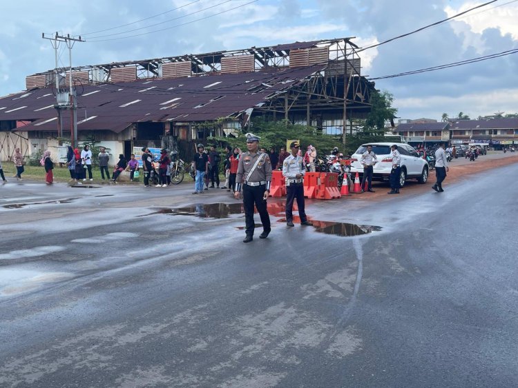 Foto Kegiatan Pawai Pembangunan Polres Lingga turunkan Personil beberapa Titik jalur lintasan Pawai.